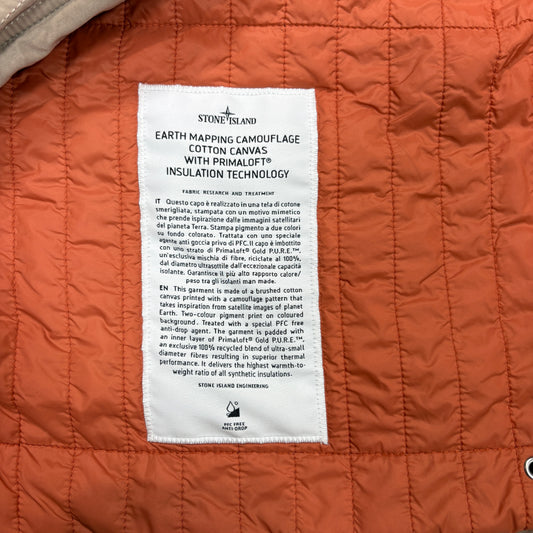 Stone Island Orange Earth Mapping Camo Cotton Canvas with Primaloft Insulation Technology Jacket