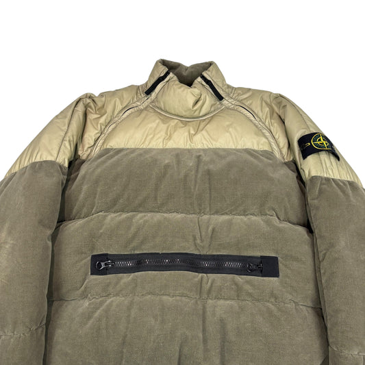 Stone Island Green Cotton Velvet Down-TC with Reverse Lamy Flock Pull Over Jacket