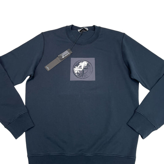 Stone Island Navy Blue Institutional One Badge Print Crewneck Jumper