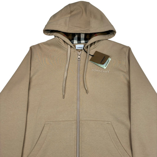 Burberry Beige Zip Up Logo Embroidery Hoodie