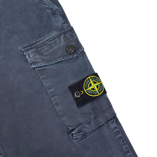 Stone Island Navy Blue Zip-Pockets Brushed Cotton Compass Patch Cargo Trousers