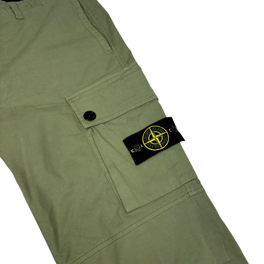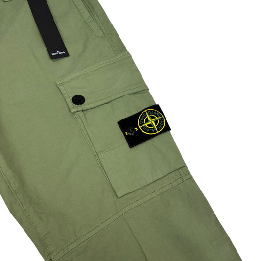 Stone Island Khaki Green Buttoned Brushed Cotton Cargo Trousers