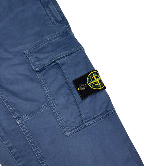 Stone Island Blue Zip-Pockets Brushed Cotton Compass-Patch Cargo Trousers