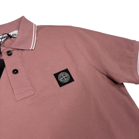 Stone Island Pink with White Stripes Patch Logo Polo Shirt