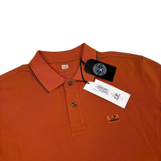 CP Company Bombay Brown Stretch Piquet Box Logo Polo Shirt