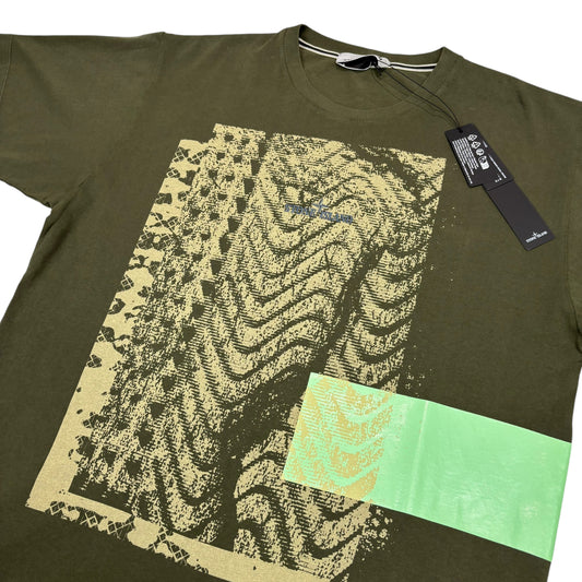 Stone Island Green with White Stripes Patch Logo Polo Shirt