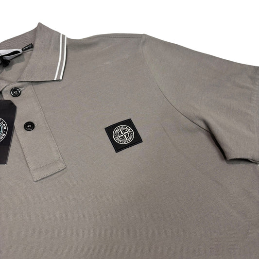 Stone Island Taupe Brown with White Stripes Patch Logo Polo Shirt