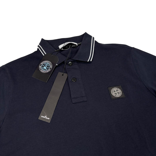 Stone Island Navy Blue Patch Logo Striped Polo TShirt
