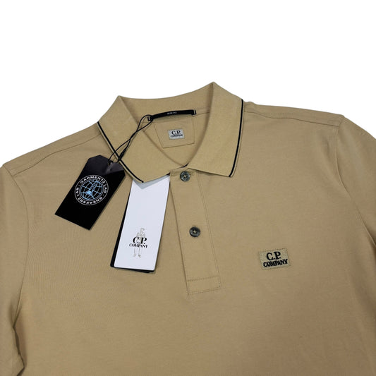 CP Company Beige Box Logo Spell Out Striped Polo Shirt