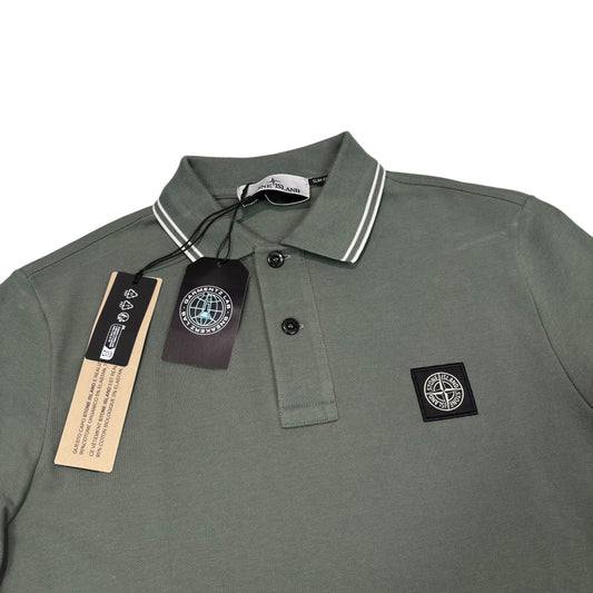 Stone Island Forest Green with White Stripe Patch Logo Polo shirt