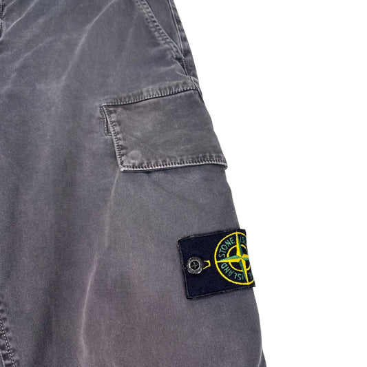 Stone Island Grey Brushed Cotton Compass-Patch Button Pocket Cargo Trousers
