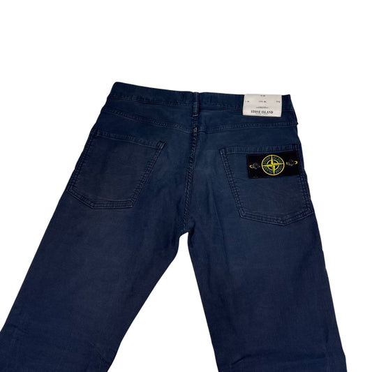 Stone Island Navy Blue Brushed Cotton Compass-Patch Jeans