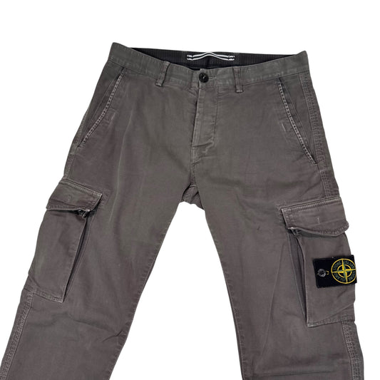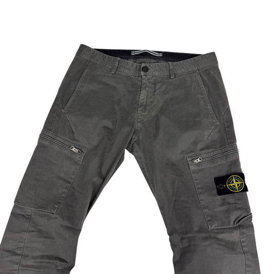 Stone Island Light Grey Zip Pocket Brushed Cotton Cargo Trousers