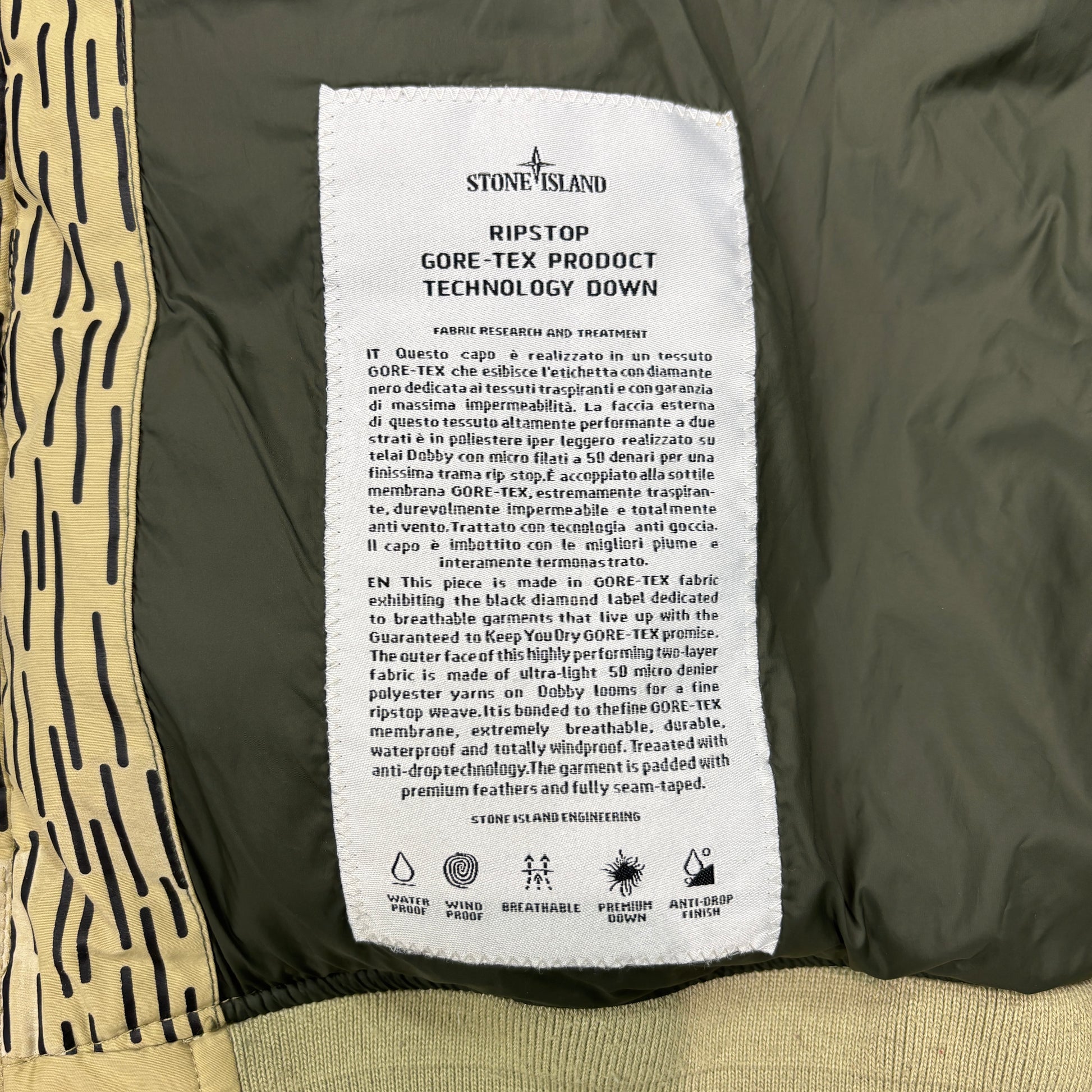 Stone Island Beige Rain Camo with Zip Away Hood Ripstop Gore Tex Down Jacket