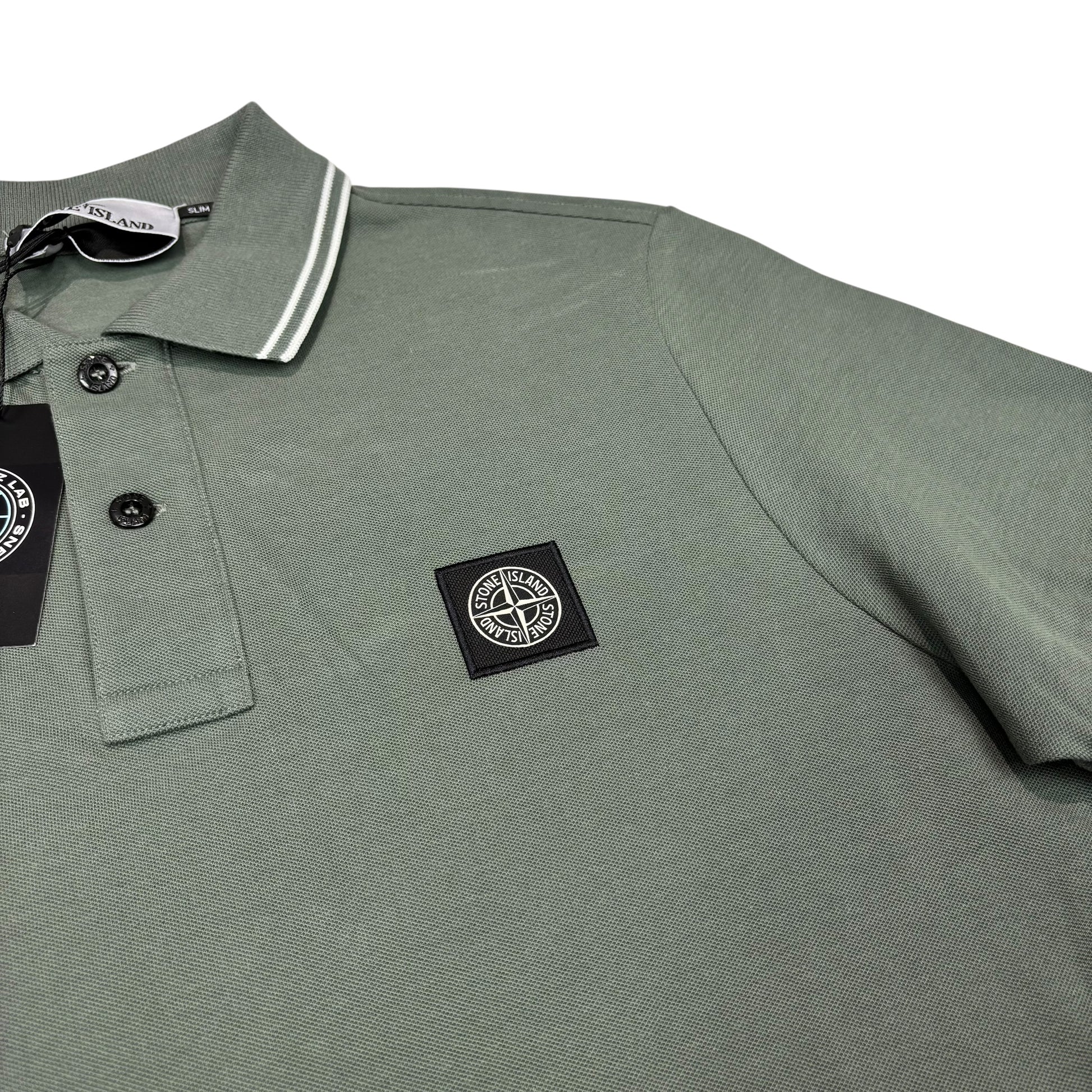 Stone Island Green with White Stripes Patch Logo Polo Shirt