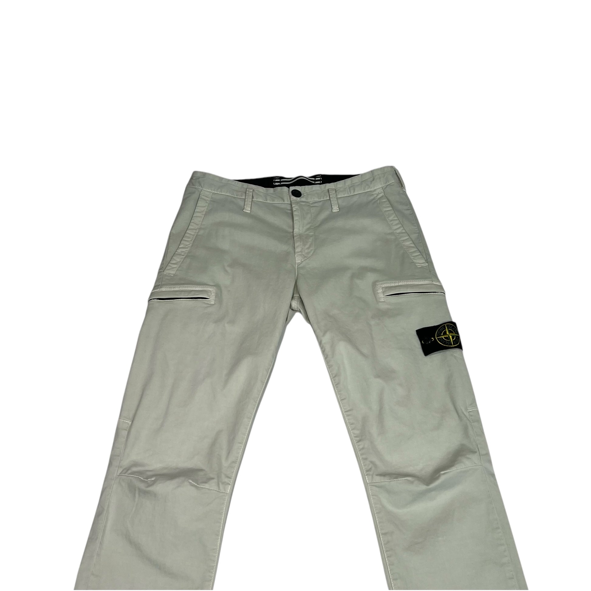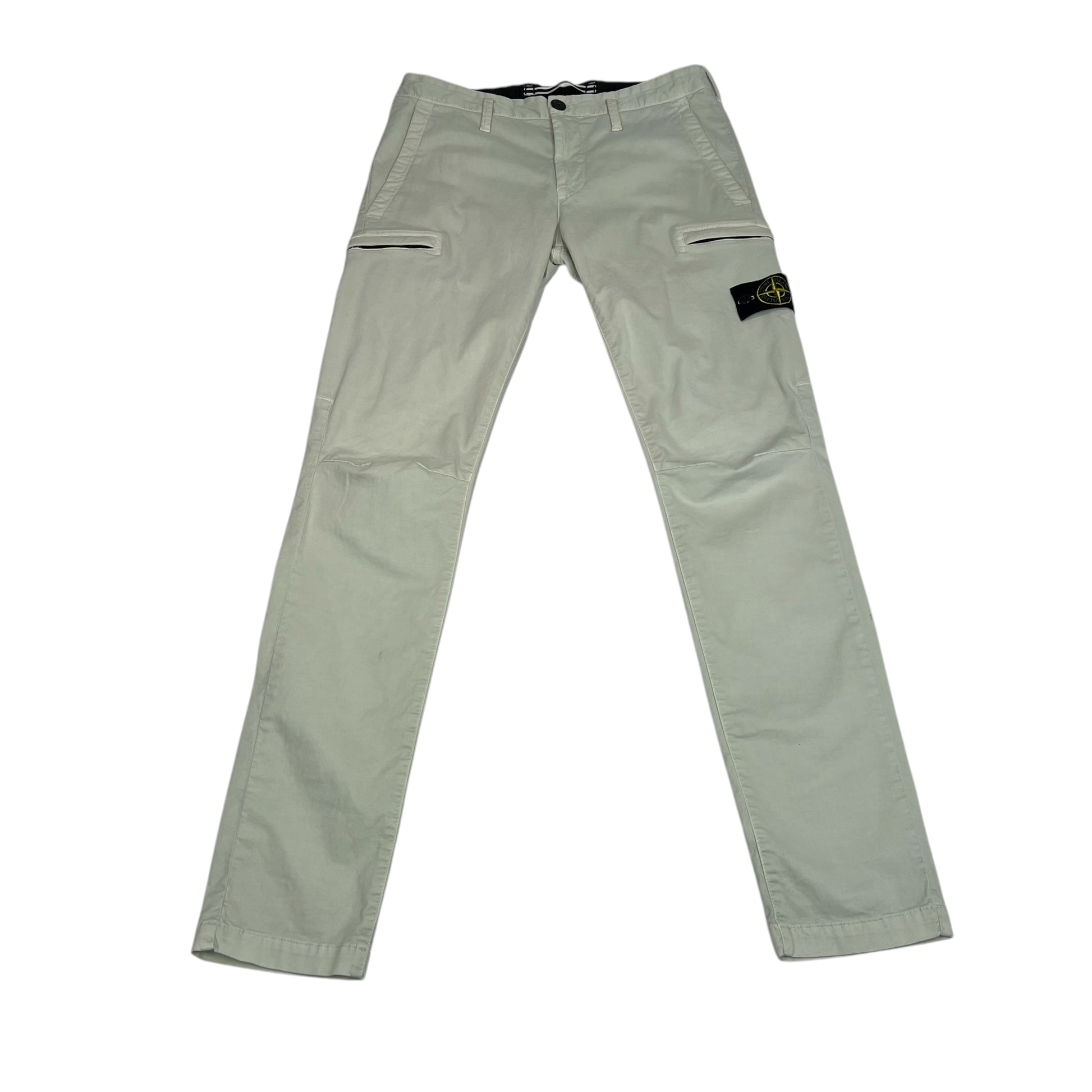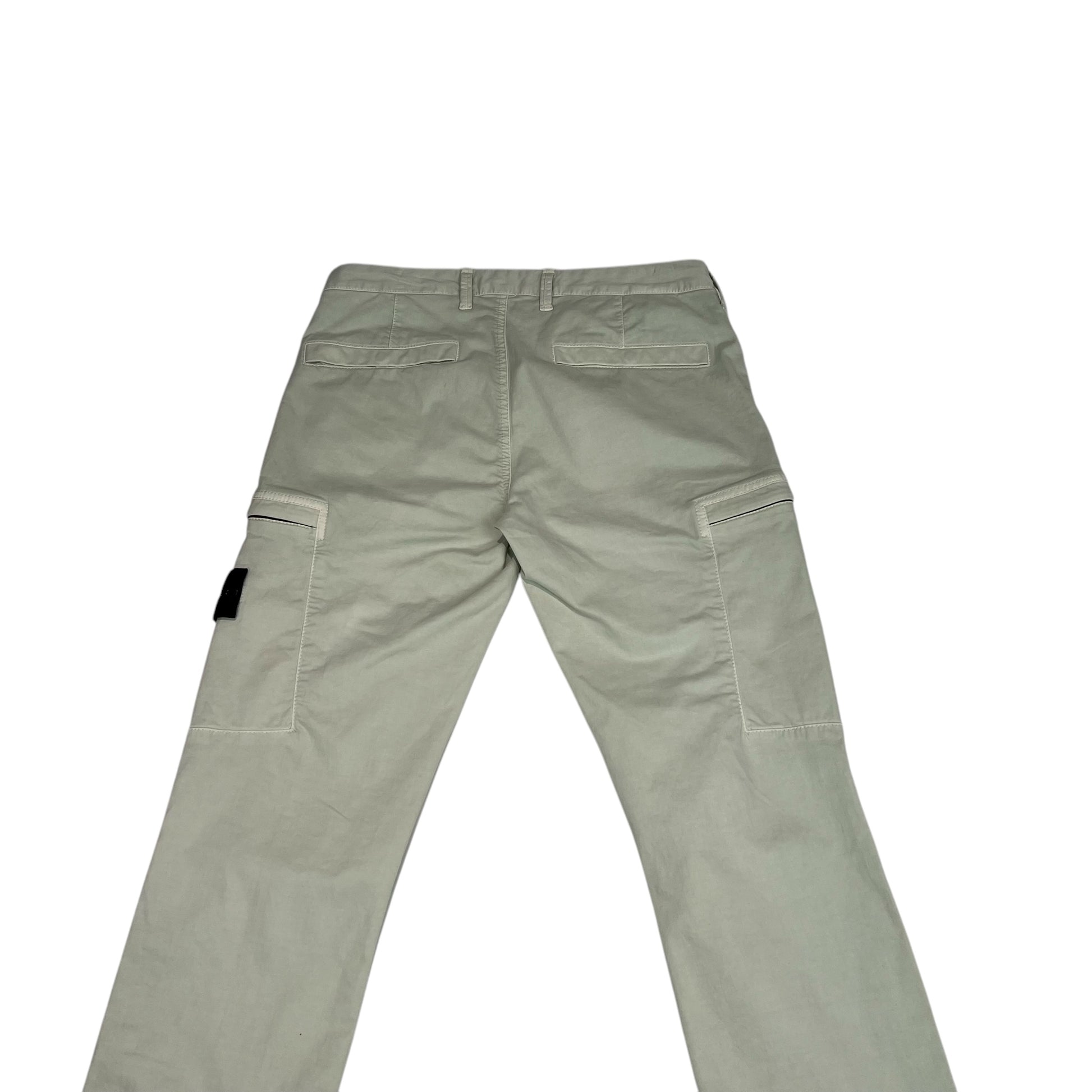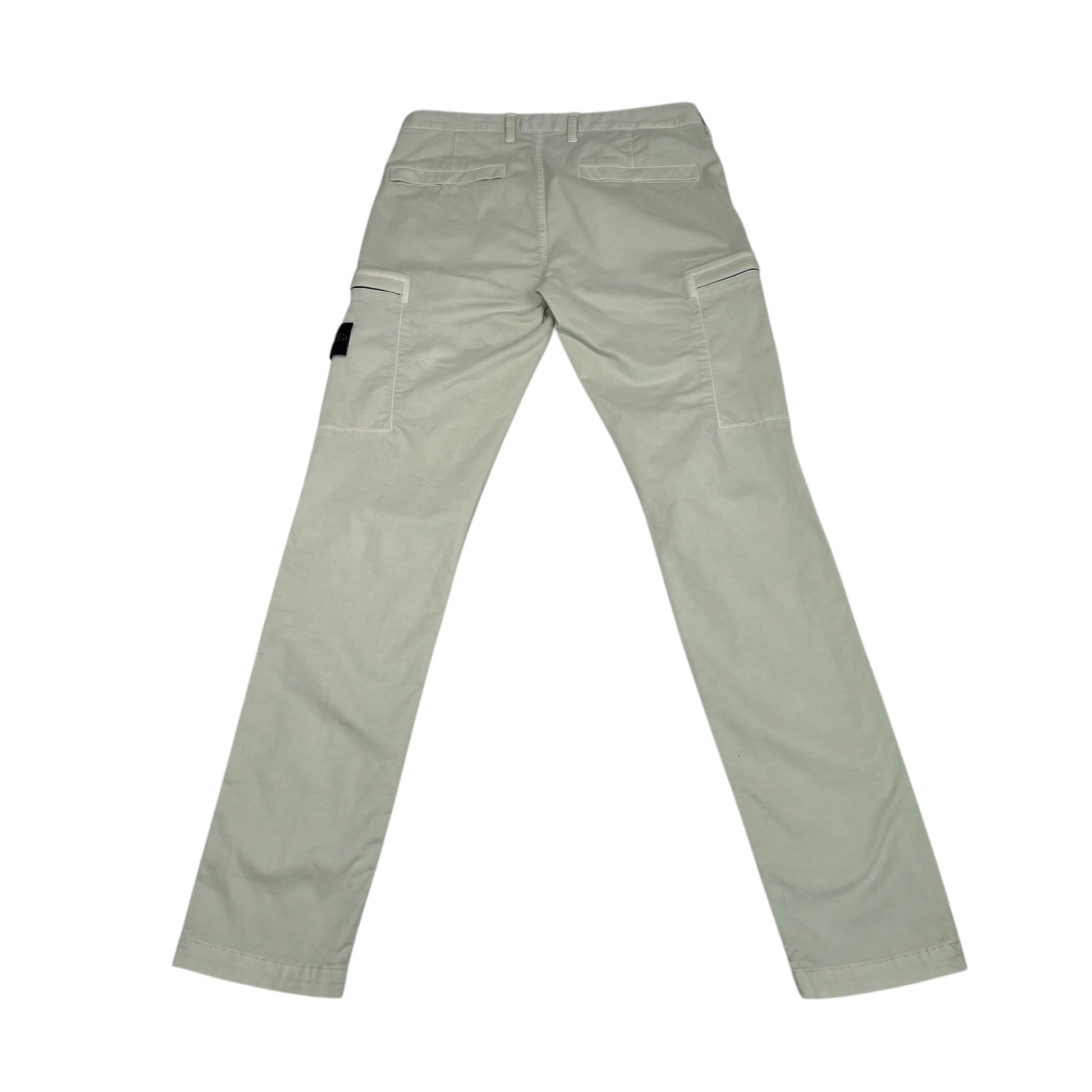 Stone Island White Zip-Pocket Brushed Cotton Cargo Trousers